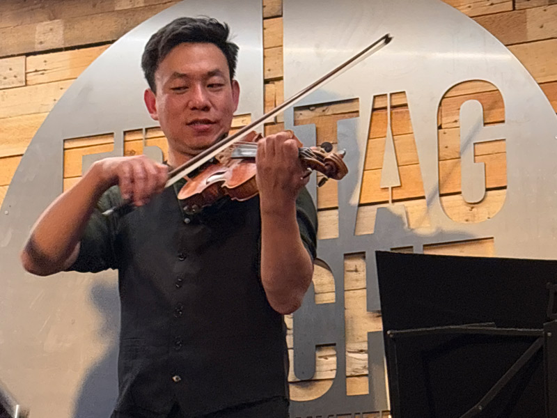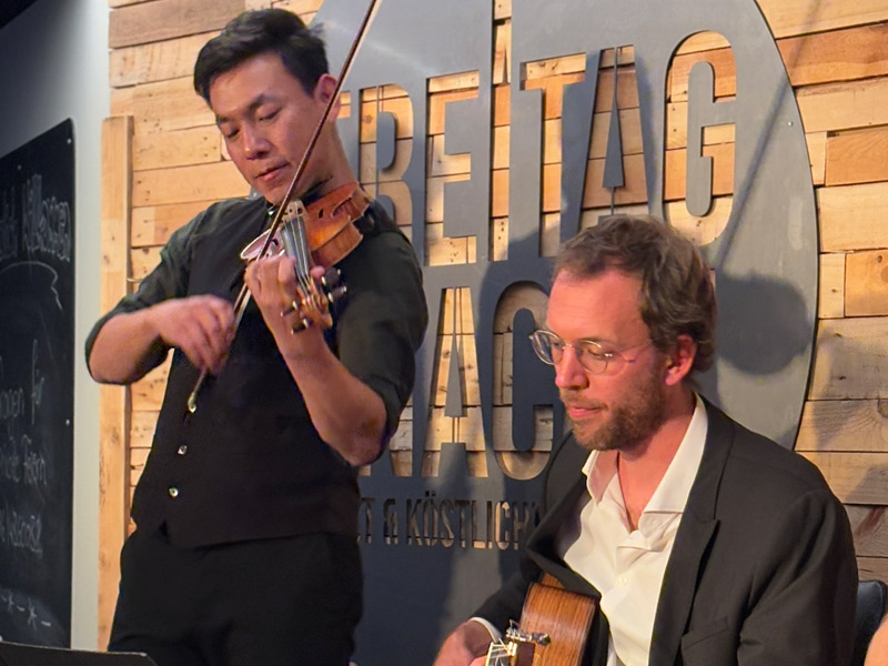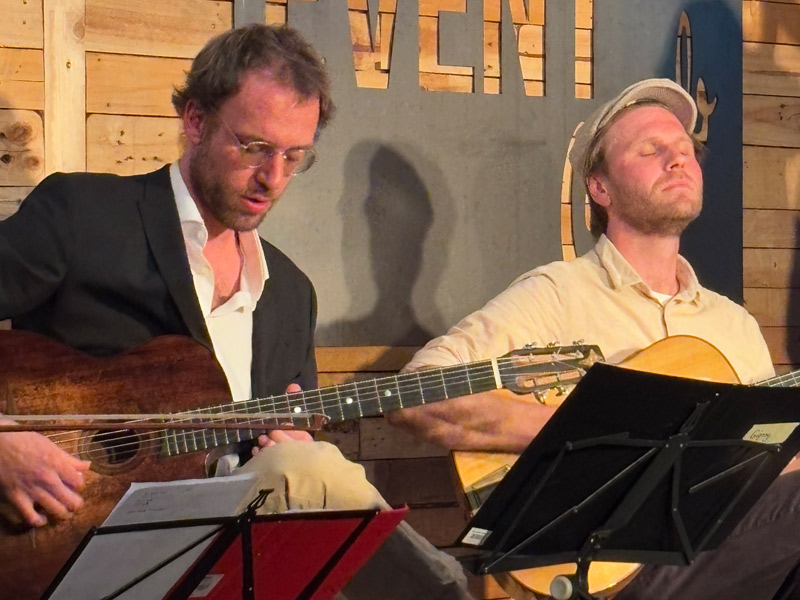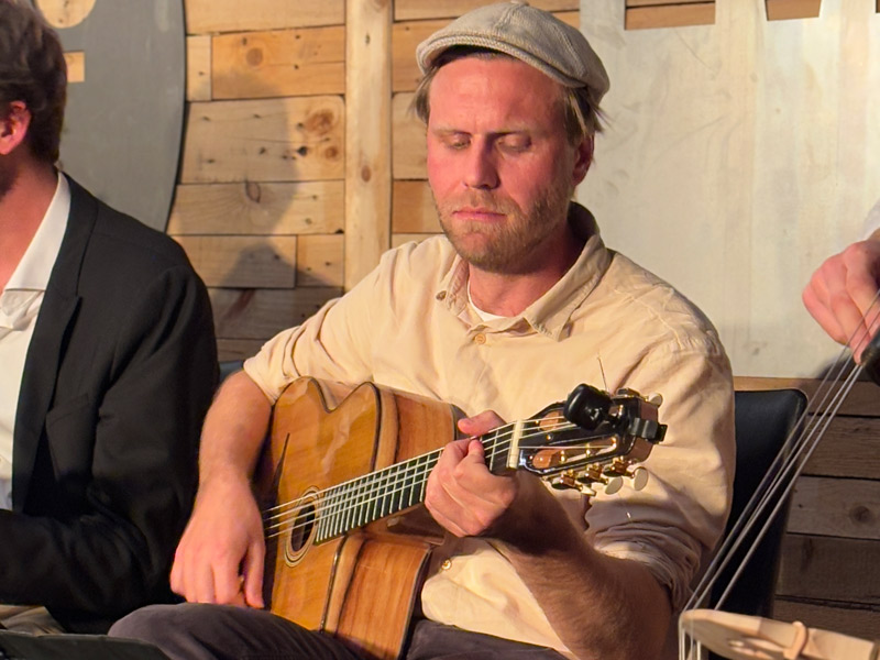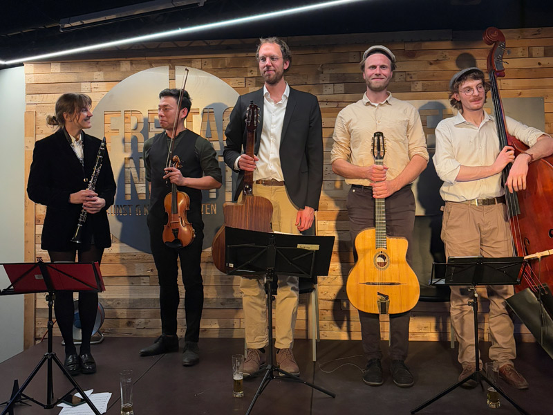 Die Band spielt Musik, angelehnt an die Tradition des legendären Sinti Gitarristen Django Reinhardt,